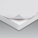 Cartón pluma con espuma de color blanco cubierta de papel plastificado por ambas caras, una de ellas incorpora adhesivo compuesto de un patrón especifico que permite eliminar burbujas e imperfecciones con facilidad aún después de encolado el original. Especial para medios formatos, fotografías, posters etc. Además de manualmente puede usarse en máquinas de montaje y laminado. Las dos caras de papel plastificado evitan que combe a causa de humedad o cambios de temperatura.